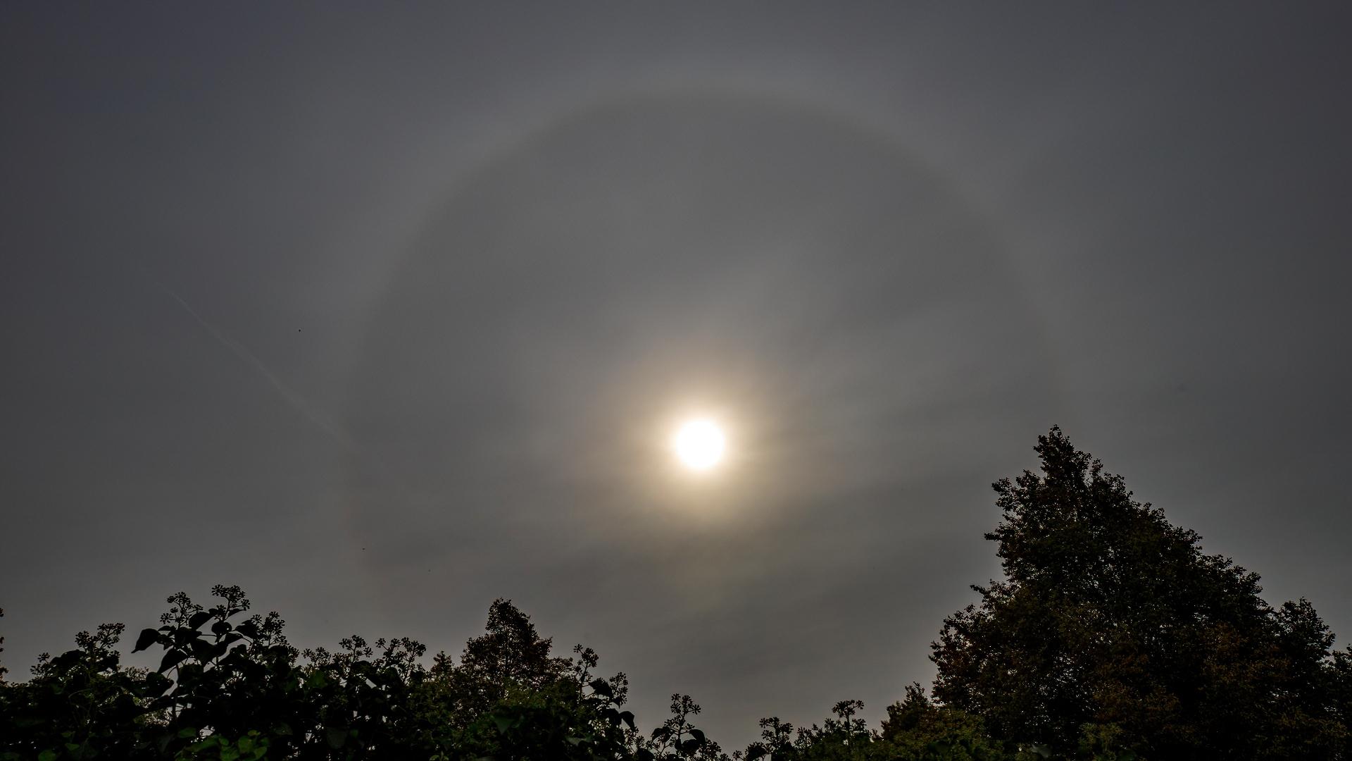 Kring rond de zon gefotografeerd met grijsfilter