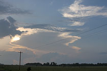 Om 16.00 uur begon de boel goed op gang te komen, de "updraft" in sommige cellen was enorm, er moest wel onweer van komen en om 12.30 CDT uur hadden we het onweer al gevonden. We zijn weer terug gereden naar Goodland om het internet te raadplegen want ons modem is nog steeds kapot.