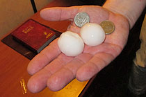 De hagelstenen waren van "base ball" grootte en vernielden vele autoruiten, auto's en huizen liepen veel schade op. Wij weten nu wat "golf ball" grote hagelstenen aan schade aan kan richten, getuige de schade aan onze auto opgelopen in Dumas Tx.